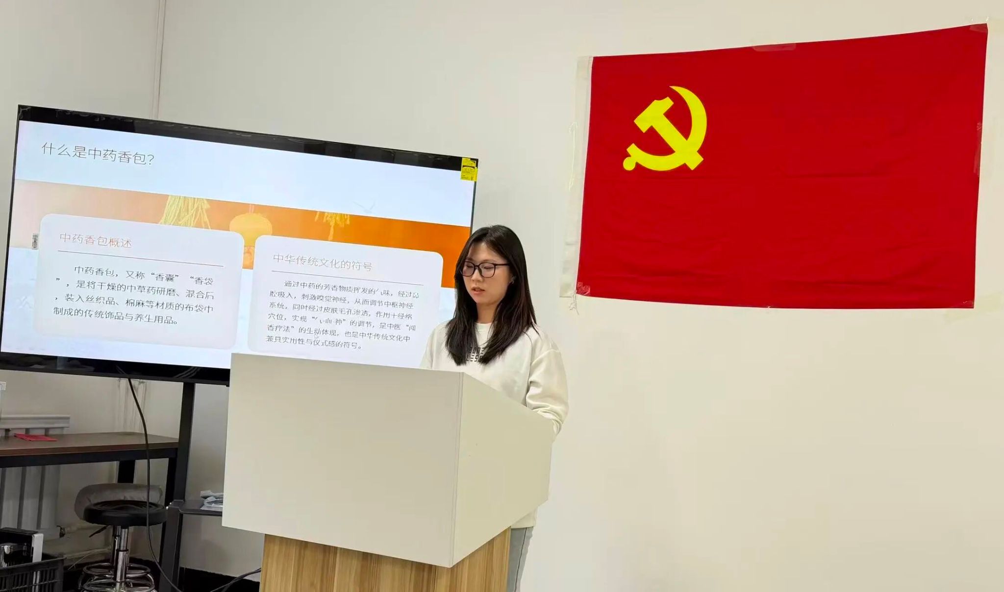 为传承中华优秀传统文化,发挥党建引领文化传承与健康养生融合的作用,11月20日,m88help员工第二党支部走进老年社区,以中药香囊为纽带开展了主题党日活动暨志愿服务活动。支部成员王子琪通过PPT生动讲解传统养生智慧,其他员工党员现场帮扶指导,在药香与笑语中为社区老人们送去健康关怀。