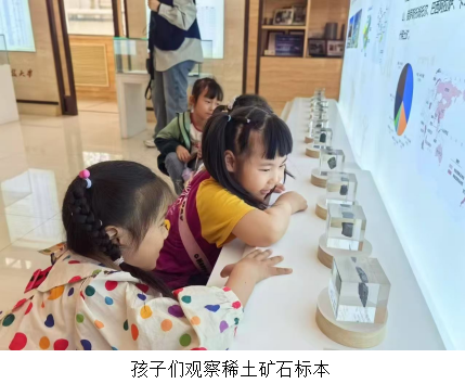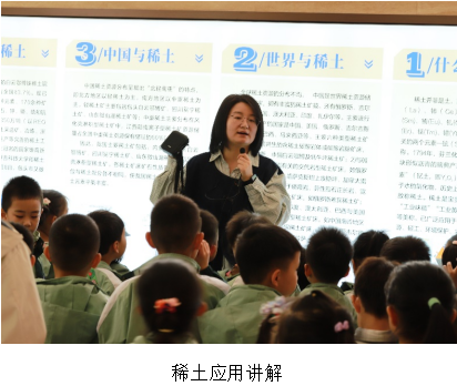 走进稀土产业公司的稀土产品展示厅,就像踏入了一个五彩斑斓的科学世界。赵烨老师如同知识渊博的导游,带领孩子们探索“工业维生素”稀土的奇妙应用。那些色彩斑斓的稀土矿石标本和互动模型,在赵老师的讲解下,成为了打开孩子们科学兴趣之门的钥匙。孩子们了解到稀土在电子设备、环保材料等众多领域的神奇作用,一个个眼神中满是对稀土元素“七十二变”的好奇与向往,探索科学的种子在他们心中悄然种下。