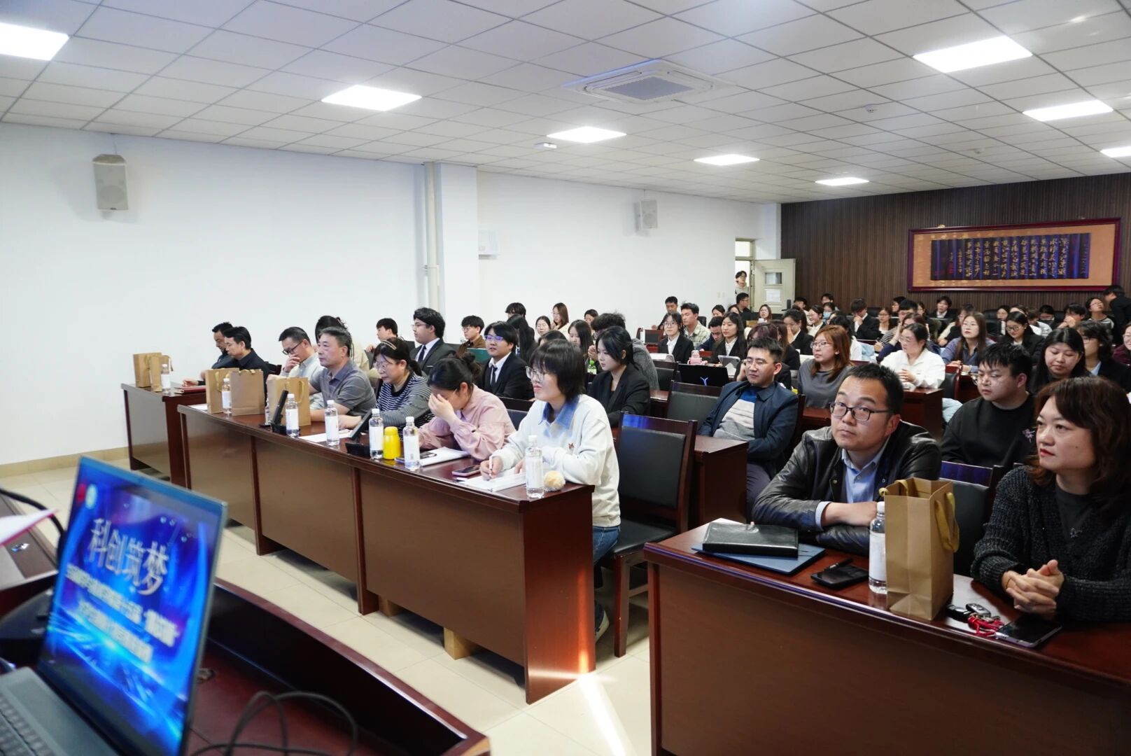 各参赛团队通过PPT演示、答辩、视频播放及实物展示等多种形式,从项目背景、核心技术、创新点、应用前景等方面进行了精彩陈述,内容构思巧妙,既有聚焦行业痛点的深度钻研,也不乏服务于社会民生的巧思构想。评委老师从项目创新性、可行性、社会价值及发展潜力等核心维度进行精准点评,既肯定了参赛作品的亮点与价值,也针对存在的问题提出了中肯的修改建议,为项目后续完善与落地实践指明方向。
