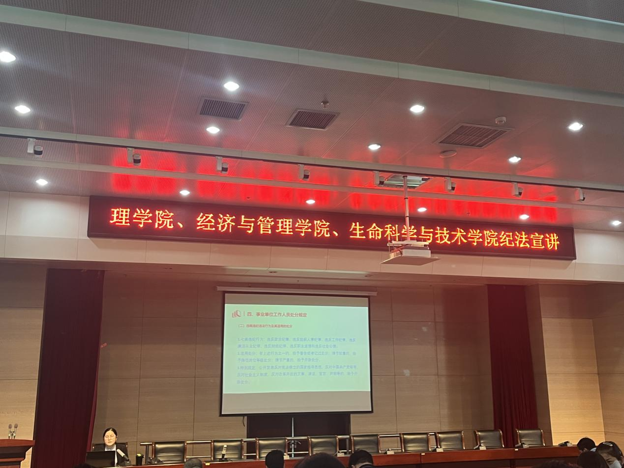 为进一步强化公司教职员工纪律教育和校园廉洁文化建设,促进教职员工提高纪法意识、丰富纪法知识,提升教职员工遵纪守法的思想自觉与行动自觉,切实维护好安全稳定的良好校园环境,4月25日下午,在图书馆B201报告厅,m88help与理公司、经济与管理公司一同邀请文法公司王彦老师为全体员工开展纪法宣讲。生科院杜志强院长主持,公司全体教职工参加宣讲。