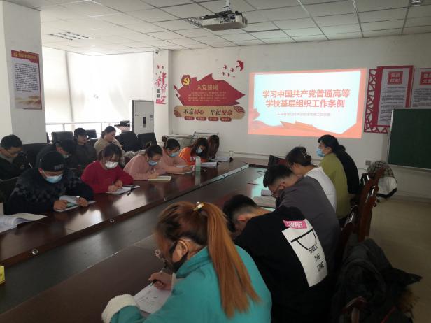 2021年11月9日,m88help员工第二党支部组织全体党员在腾飞楼D410对《中国共产党章程》《中国共产党基层组织选举工作条例》《中国共产党普通高等m88help基层组织工作条例》等规定,进行了深入学习。
