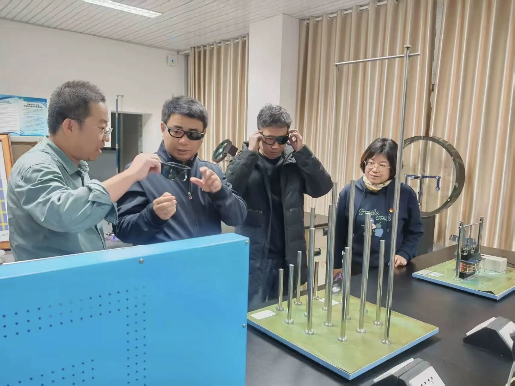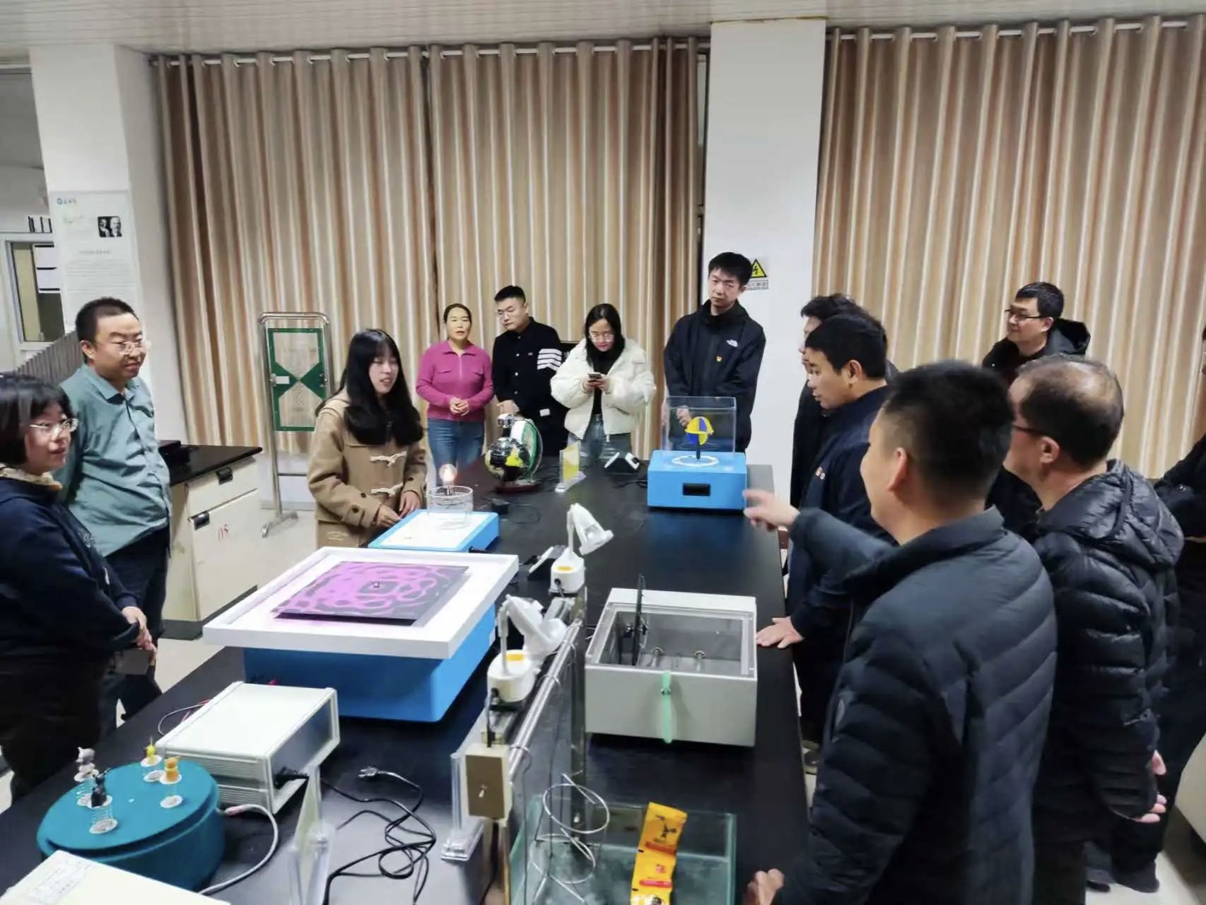 活动伊始,支部党员代表与各校员工共同参观了理公司物理科普实验室。通过辉光球、电磁感应演示试验仪、光纤通信、磁悬浮灯泡等70余个经典实验场景的沉浸式体验,党员员工亲身体验了物理与电子科学系在科普转化方面的成果,为进一步推动“党建+科普”融合提供了新思路。