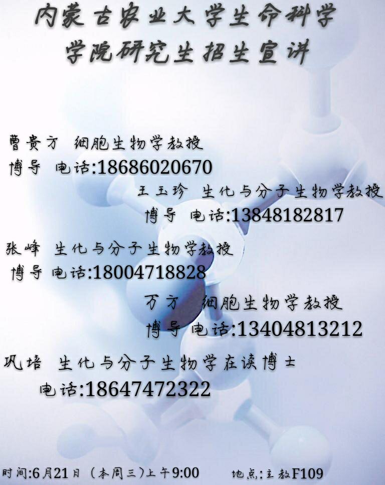 关于内蒙古农业大员工命科学公司研究生招生宣讲的通知