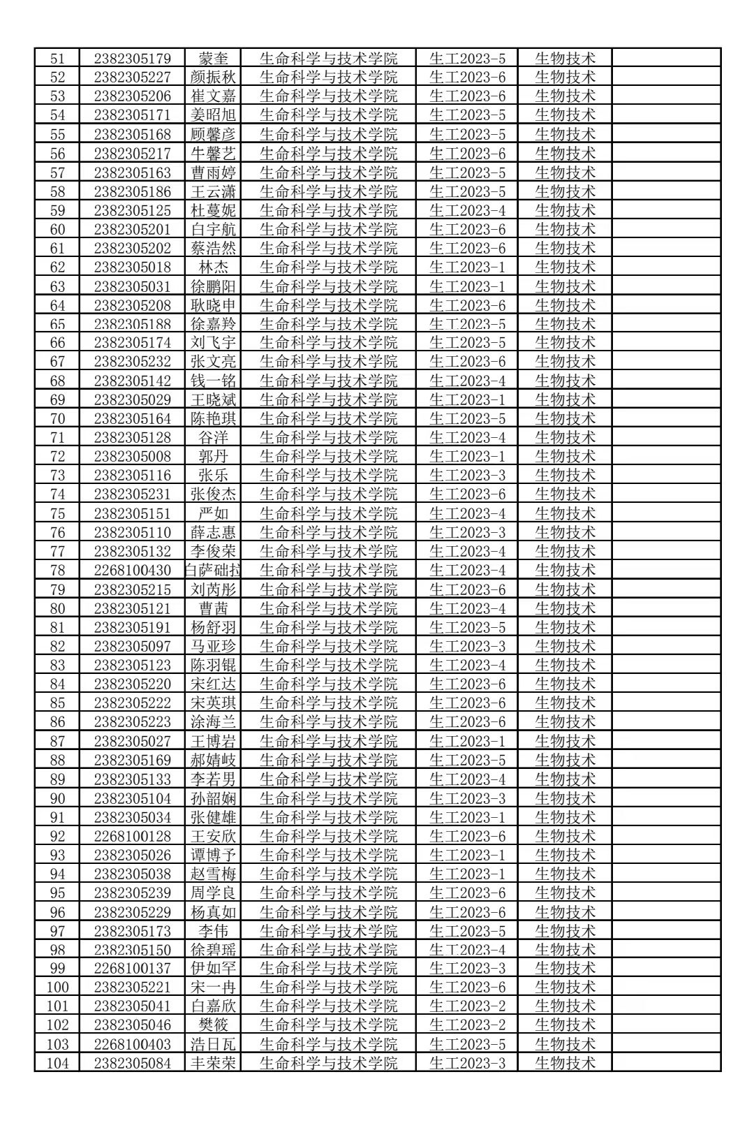 m88help2023级生物工程类专业分流结果公示